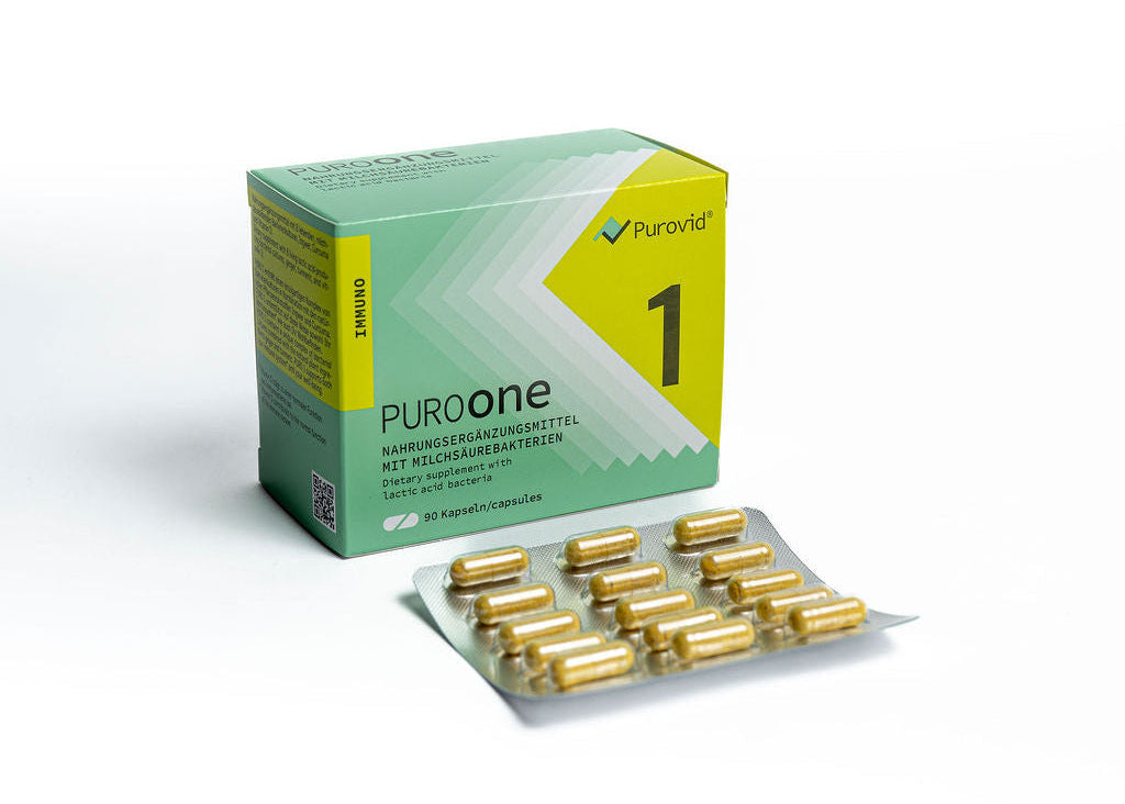 PURO 1 enthält einen einzigartigen Komplex von Bakterienkulturen, sogenannten Probiotika, in Kombination mit den natürlichen Pflanzenrohstoffen Ingwer und Kurkuma. PURO 1 unterstützt auf diese Weise sowohl Ihr Immunsystem* wie auch Ihr Wohlbefinden.