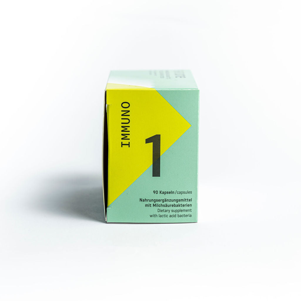 Nahrungsergänzungsmittel mit 8 lebenden, milchsäurebildenden Bakterienkulturen, Agaven Inulin, Hefe, Ingwer, Curcuma und Vitamin D für eine natürliche Immunsystemunterstützung.